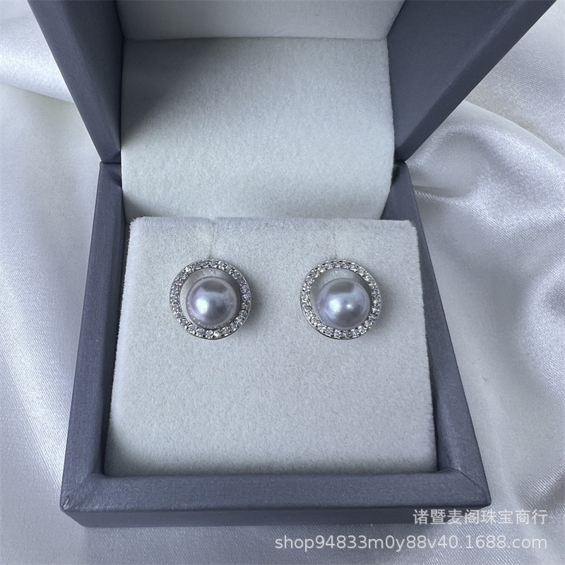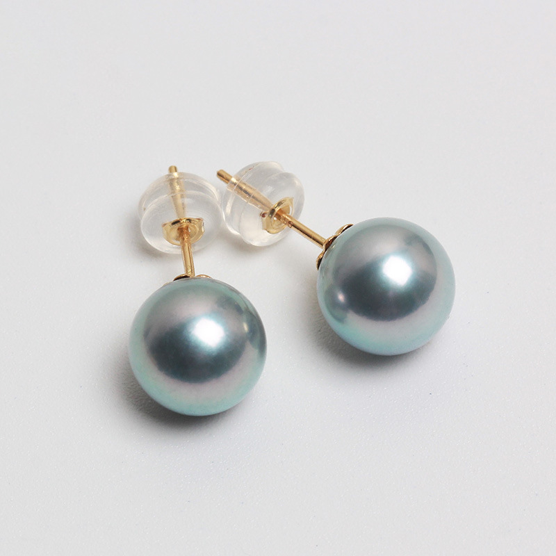 6-9mm日本海水akoya真珠ピアスs925銀針真円真多麻イヤリング青灰k金イヤリング