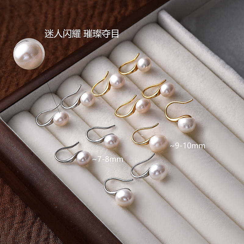 真珠ピアス8mm程度通体s925銀針真珠素釘シンプル耳飾り淡水真真珠耳棒女