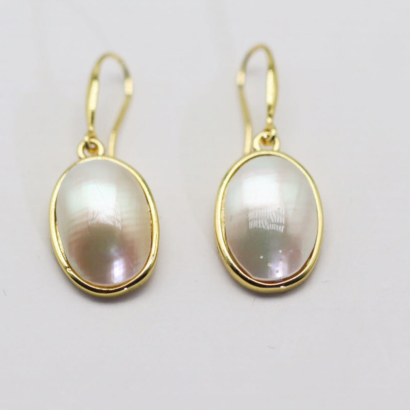 8-9mm優しい気質天淡水然粟真珠蝶イヤリング14k包金白蝶貝ピアス女性