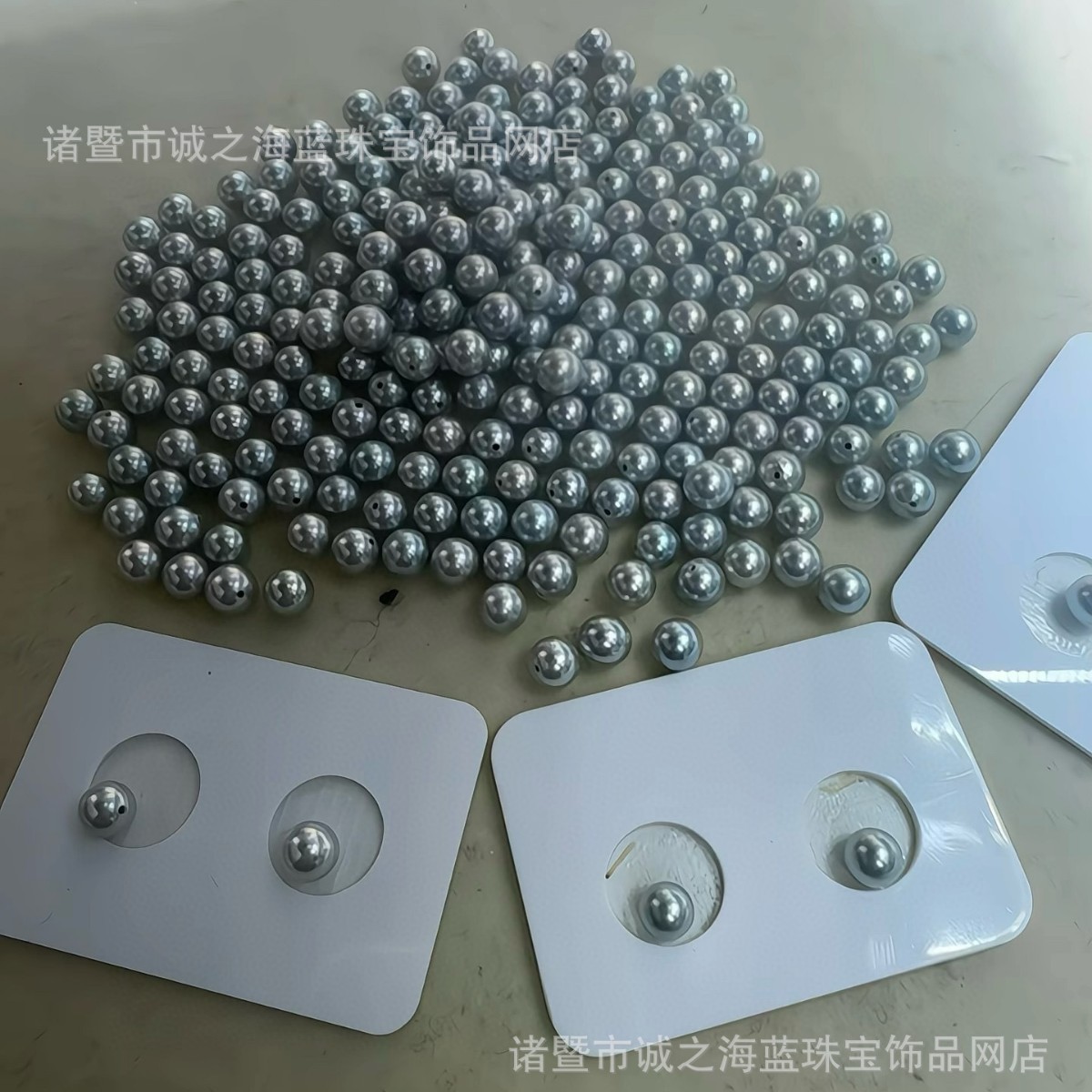 馬貝世界真珠ピアス、裸玉約15.5mm、モザイク約17mm、銀色の青い馬貝