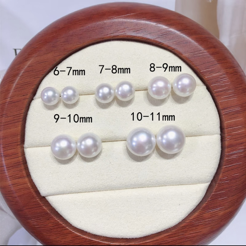 天然淡水珍珠耳钉耳饰S925纯银针圆形白色5-10mm带礼盒珍珠耳饰
