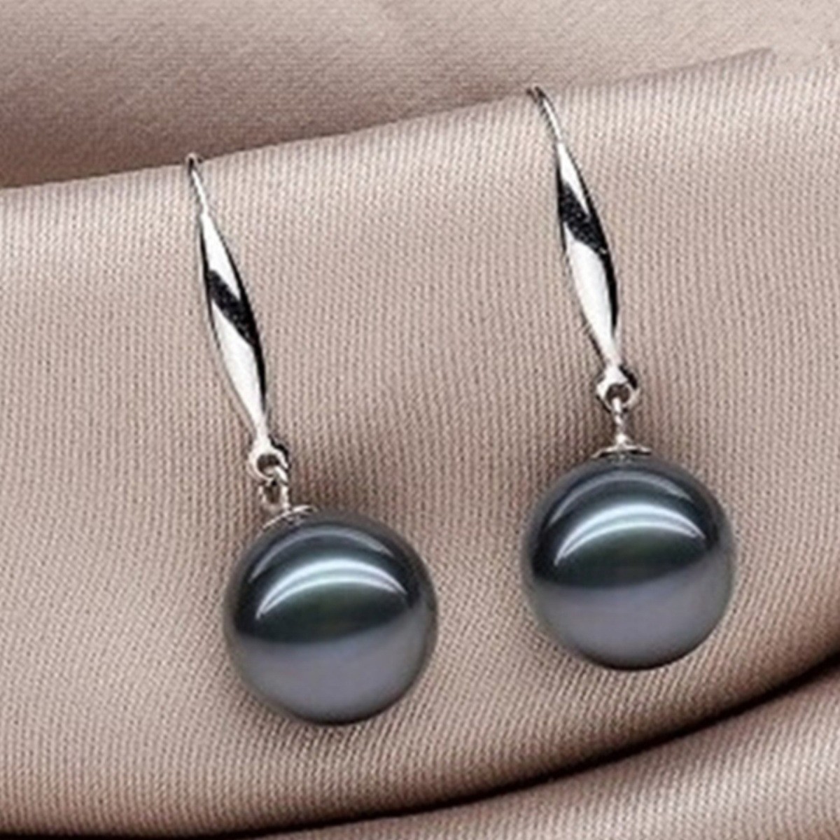 S925銀古典型海水真珠イヤリング10-11mm海水タヒチ黒真珠