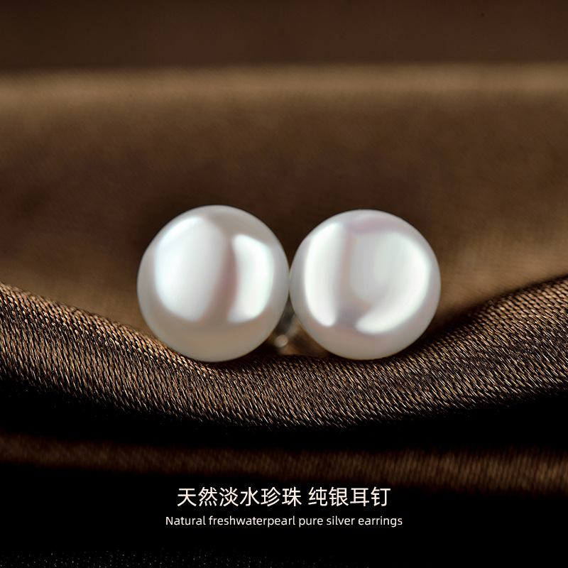 天然淡水パールピアス シンプルな高光沢パン型パール S925シルバーパールピアス 卸売 ライトラグジュアリー