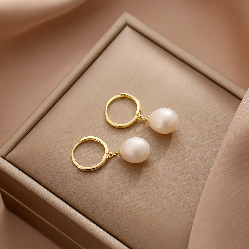 天然淡水真珠イヤリング18k包金耳ボタンins気質流行モデル女性軽量水滴形真珠イヤリング
