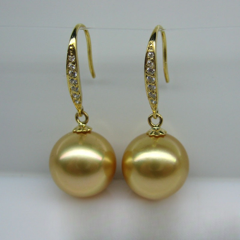12-13 南洋ゴールデンパール 925 スターリングシルバーイヤーフック天然海水真珠のイヤリング耳ジュエリーイヤリングイヤリング