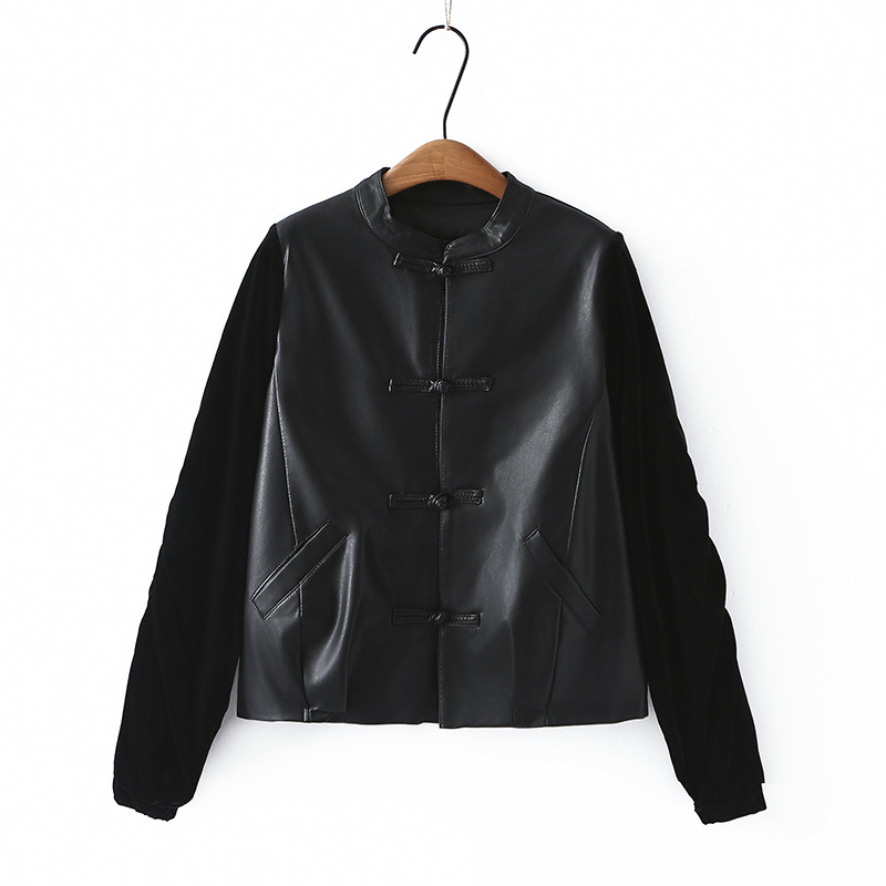 大きいサイズの婦人服の復古民族風の流蘇盤は色の長袖の皮の服にぶつかってゆったりしていてやせている気質のコートを現します372350