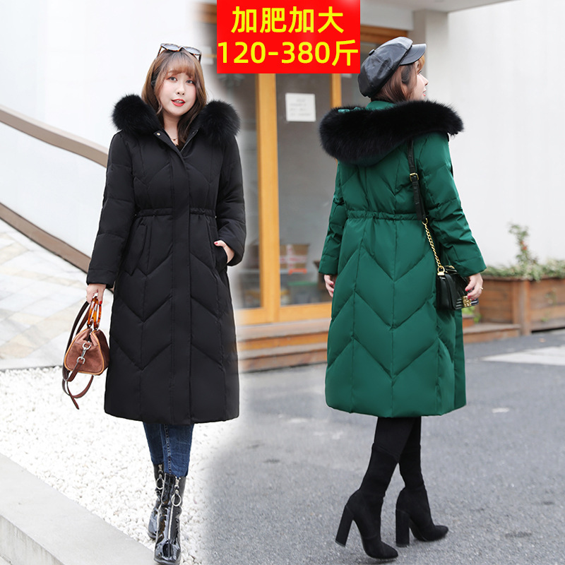 太ったmm 300斤のダウンジャケットと太った特別サイズの防寒コート200斤の女性の中の長さは腰を収めてやせている冬服を示している