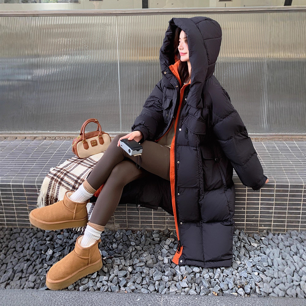 2025年新作冬服韓国版プラスサイズ100kgロング丈フード付き90%ホワイトダックダウンジャケット女性用223