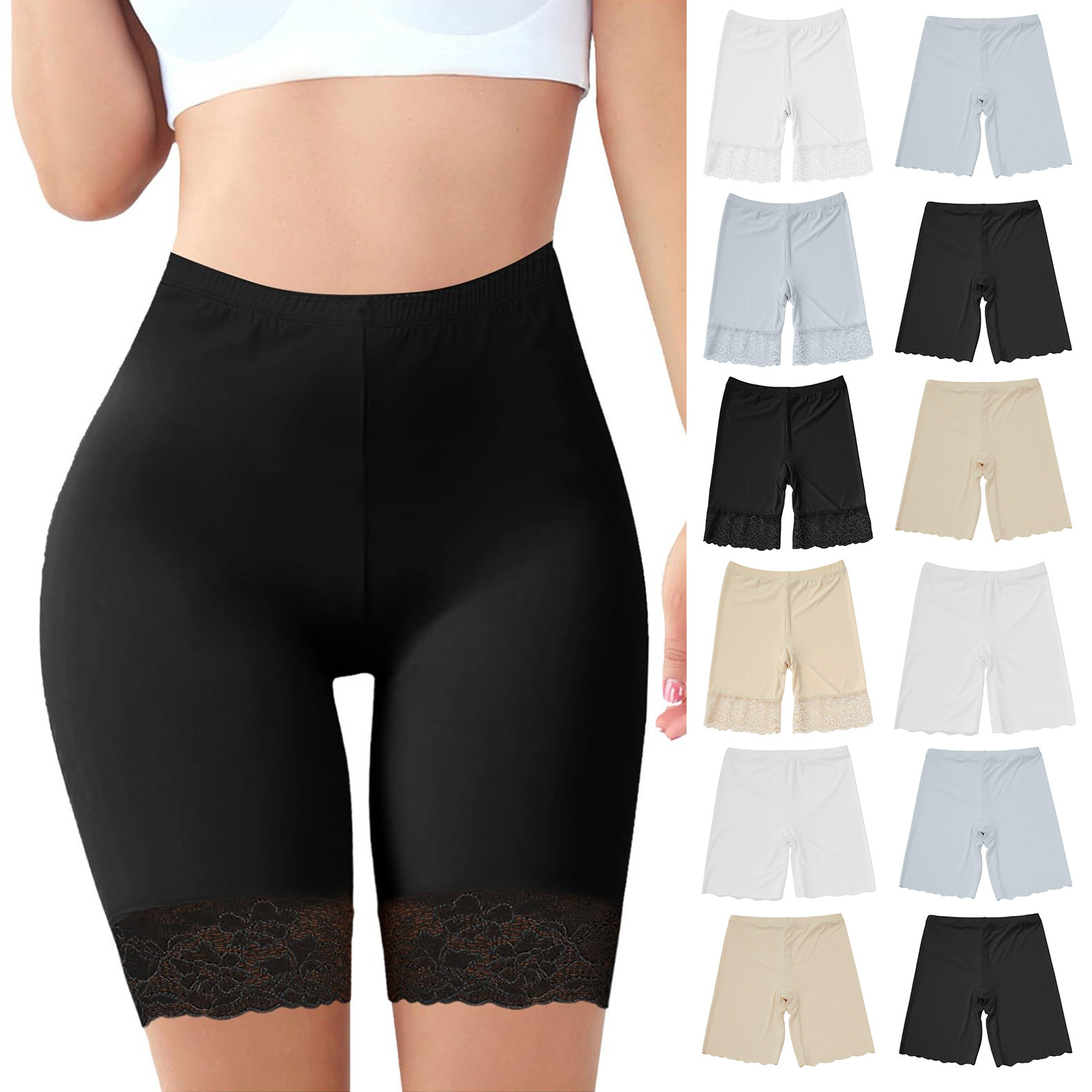 外国貿易の氷の糸の無傷の安全ズボンの大きいサイズの内の半ズボンの女性の防走光保険の3分のレギンスのレースの夏