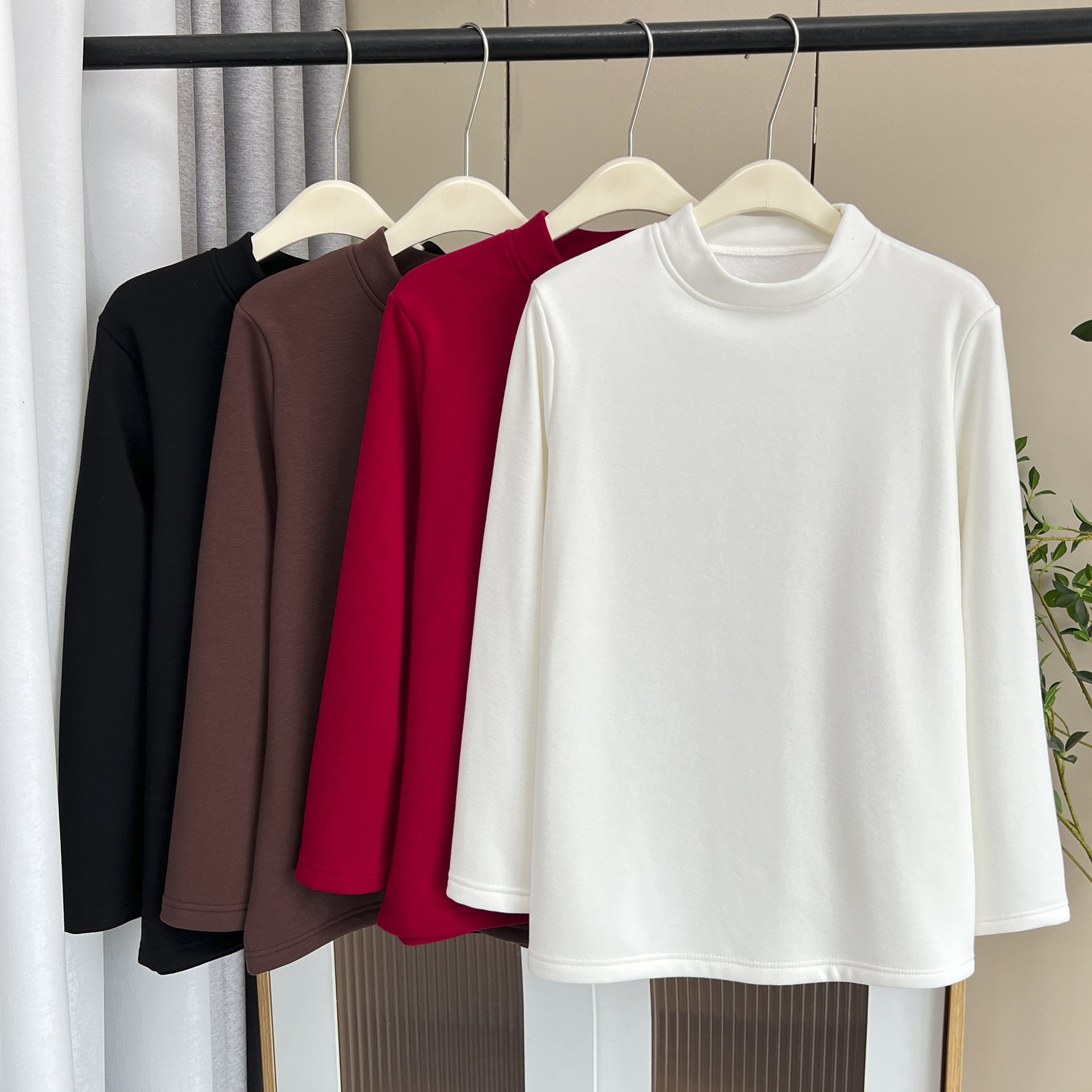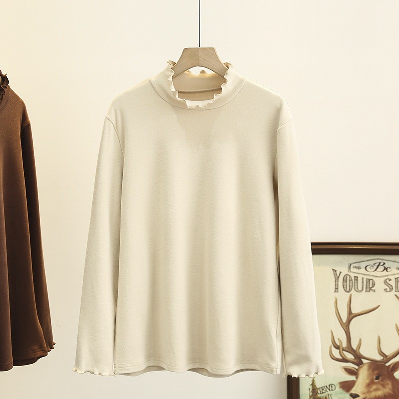 2024大サイズ秋冬新モデル200斤太った妹のシンプルな半高襟とベルベットの厚い長袖シャツ5612