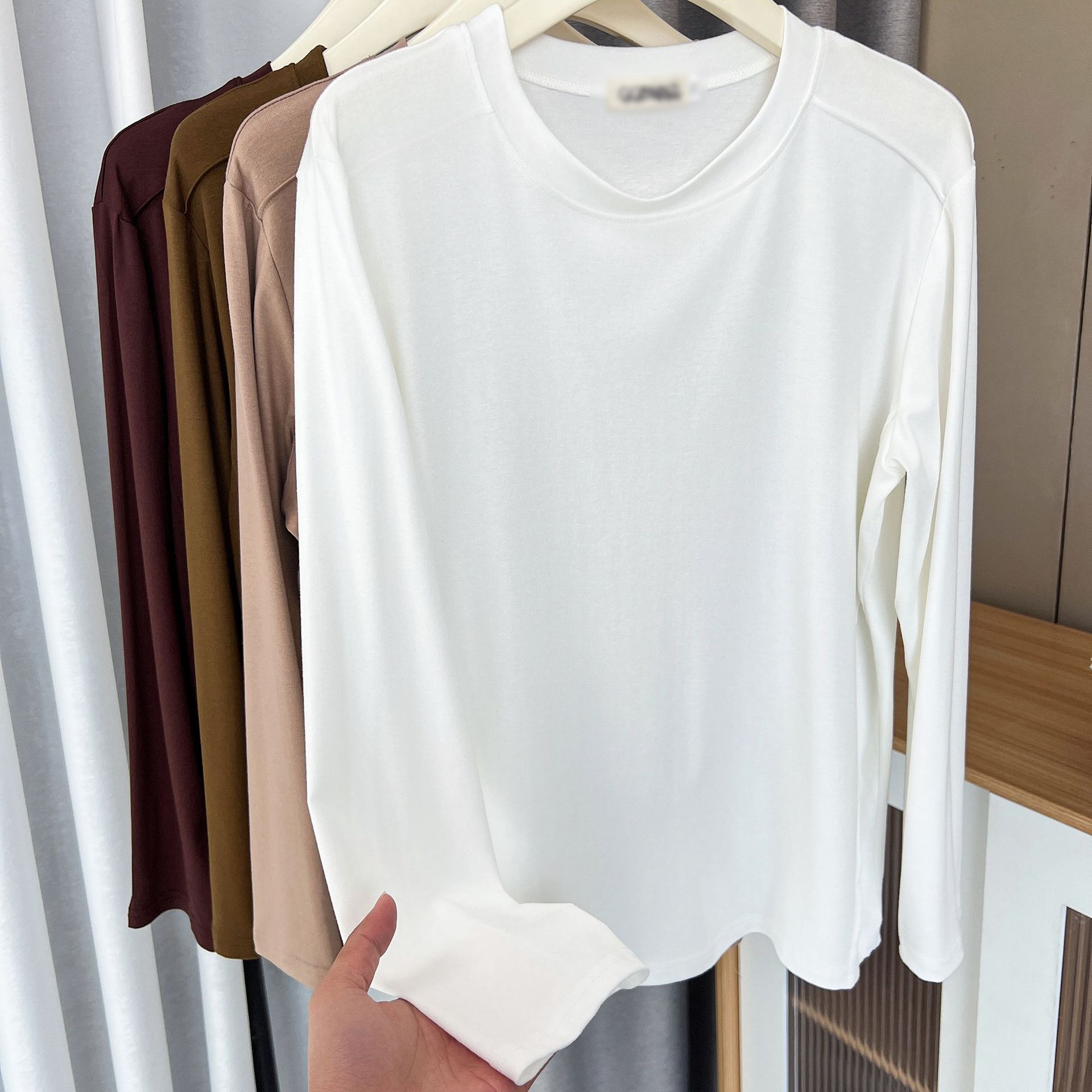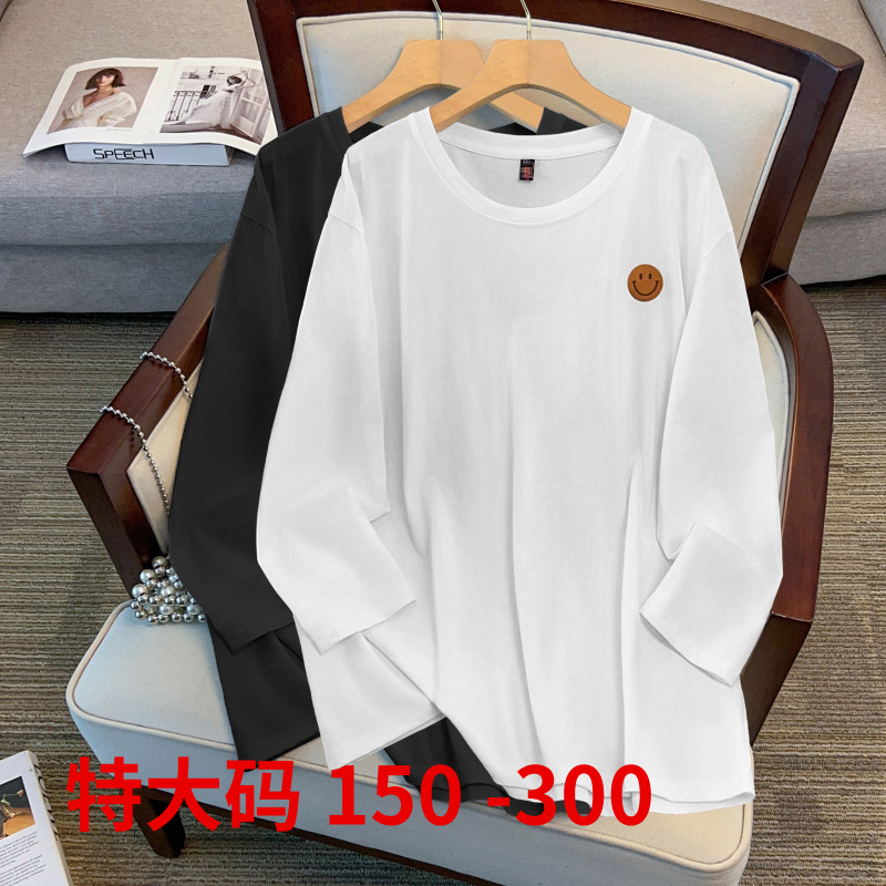 1229 # 大きいサイズの太ったmm2025は新しい女性の長袖の丸首のtシャツの底のシャツの白い底の服を詰めます。