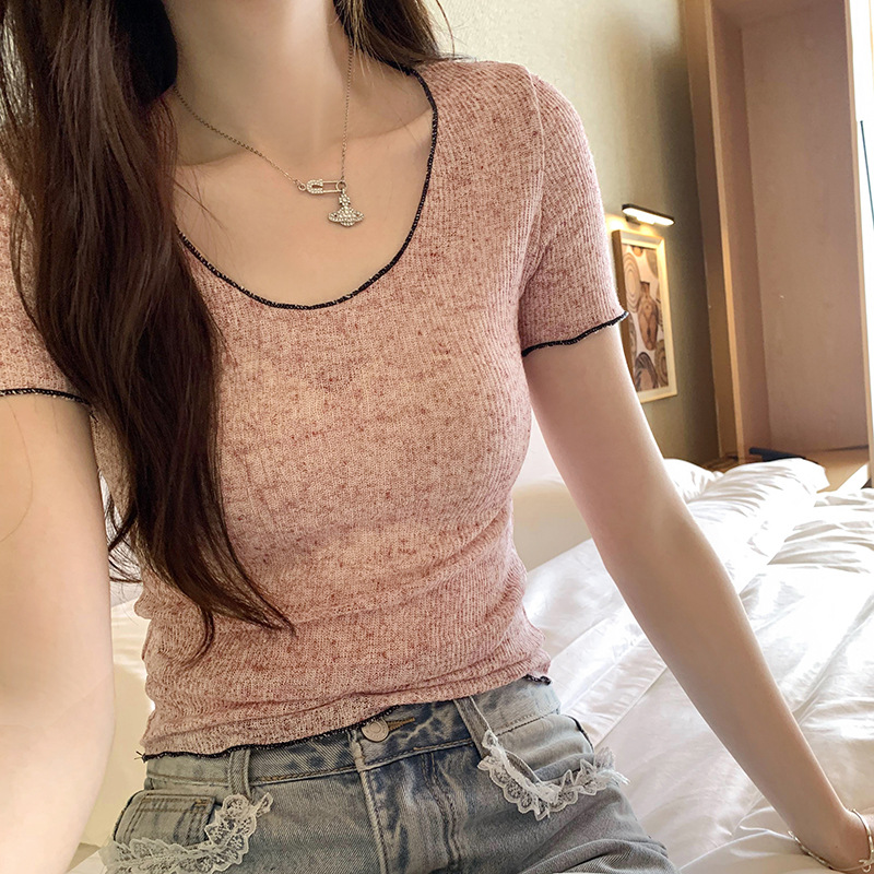 2025実拍図韓系小衆丸襟正肩半袖tシャツ女性夏の新型起爆金は絶美で腰を絞める