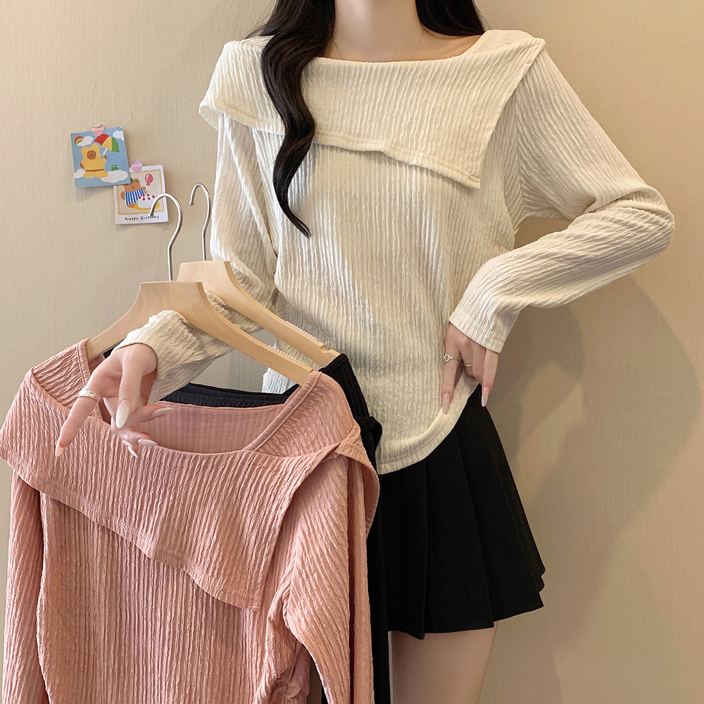 2024欧米の越境秋冬の新型の婦人服のカジュアルな純色の肩のファッションのゆったりしている長袖のtシャツのニットの上着