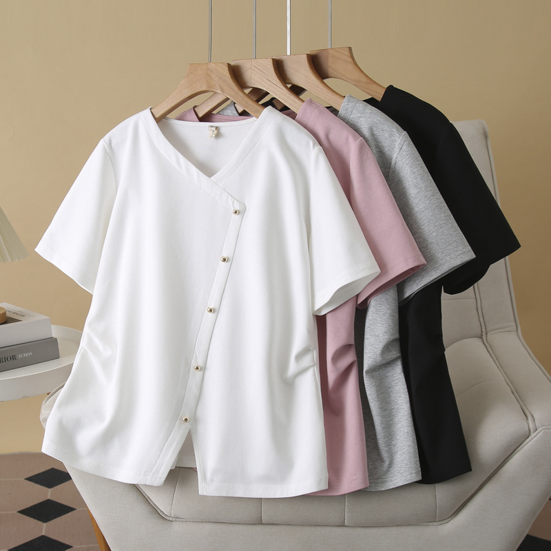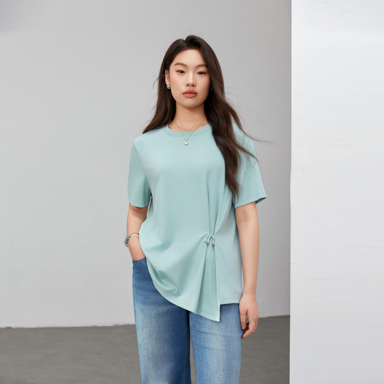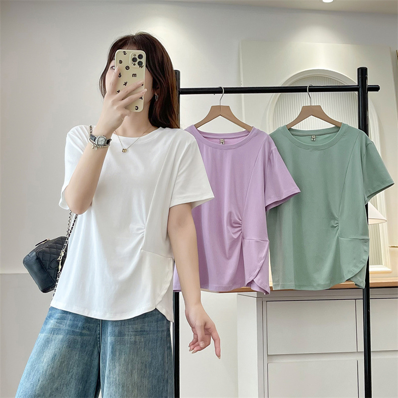 不規則tシャツ半袖大サイズ女装2025夏オープンシャツ腰のしわが痩せている妹の上着の小衆008