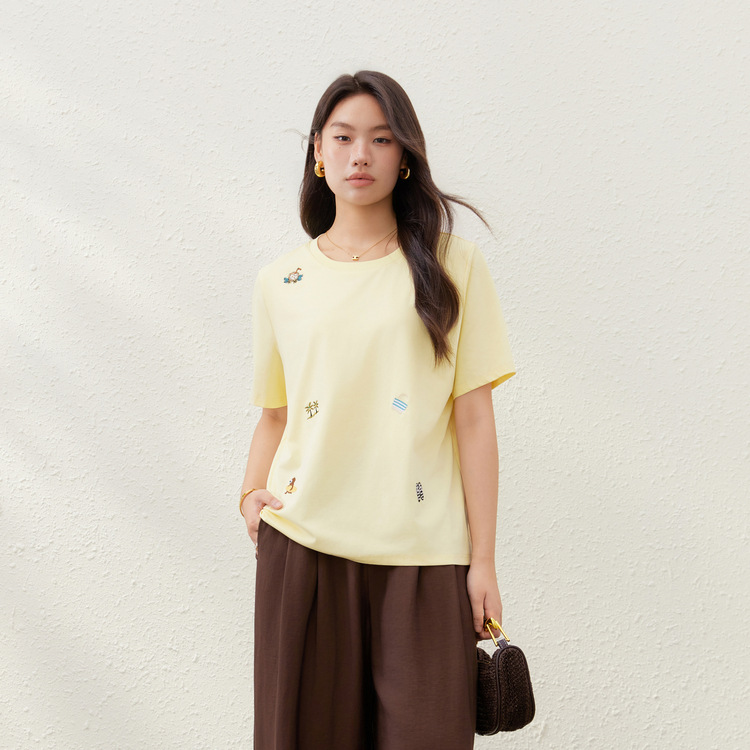 【年齢軽減刺繍柄万能着痩せ半袖Tシャツ】Xianlixiu大きいサイズレディースファットmm2025夏新作