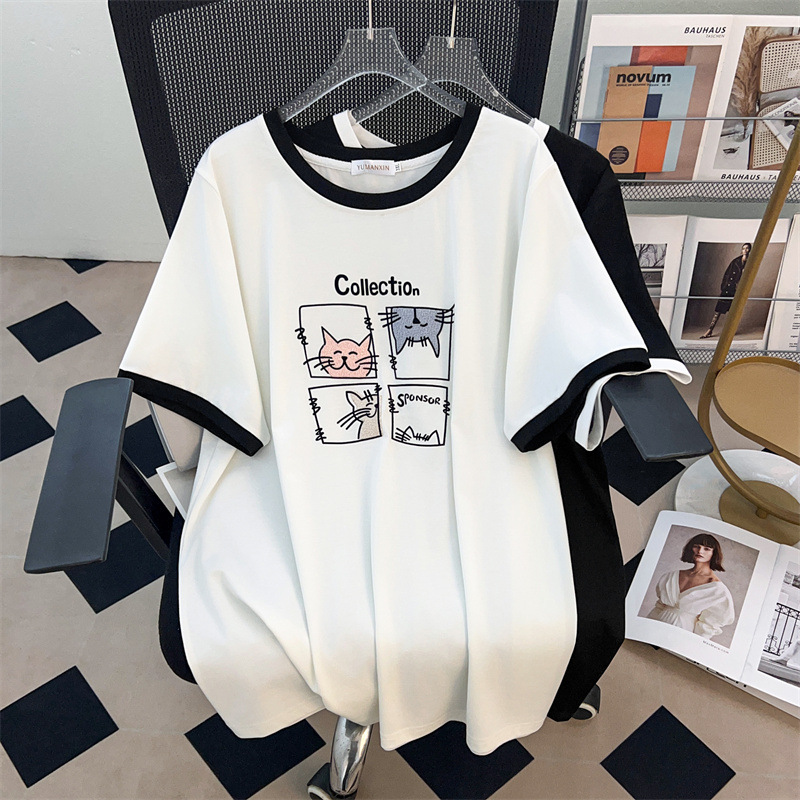 ラウンドネック新スタイルプラスサイズ痩身ルーズミッドレングス半袖Tシャツ女性用200/300/350ポンド1081