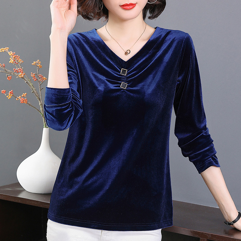 1275 # 現物3色7ヤード () 金糸パイルvネック上着女装新大サイズ長袖tシャツシャツ