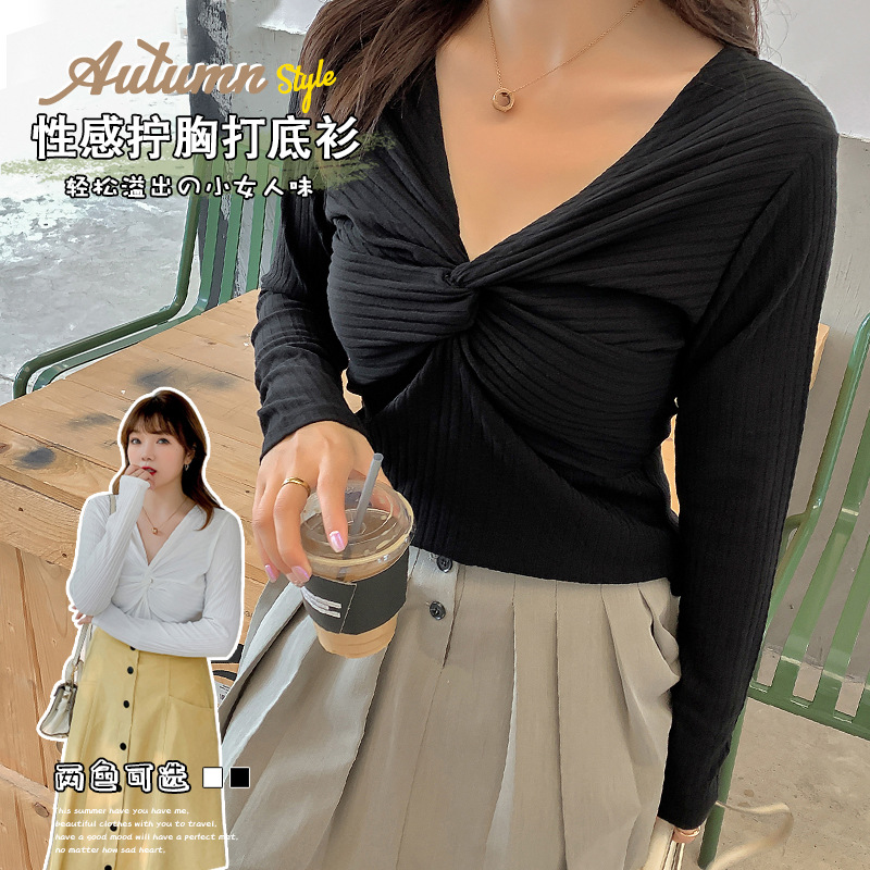 W 87軒辰微太った大きいサイズ2023秋の服は胸vネックのニットの上着をねじります。
