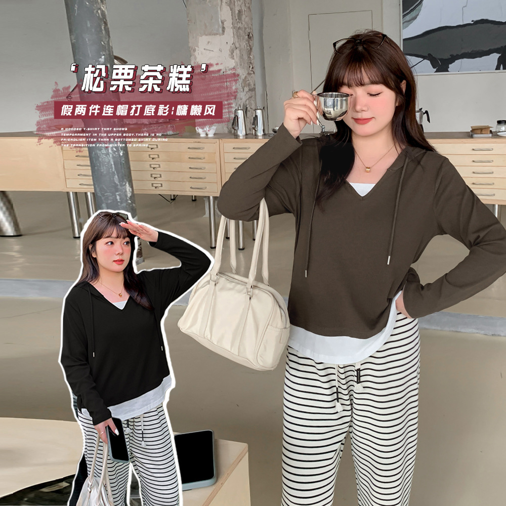 MJ300 許晨 マイクロプラスサイズ 韓国風デザイン スリット入りインナーシャツ 秋新作 大きいサイズ 体型カバー 長袖Tシャツ レディース
