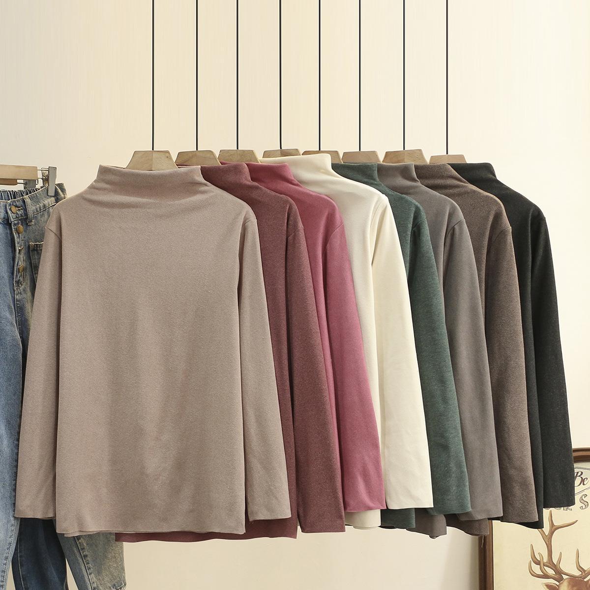 300斤の大きいサイズの婦人服の秋の服の新型の洋気の長袖のtシャツの半高の襟の底のシャツの太っているmmの秋冬の中で上着を掛けます