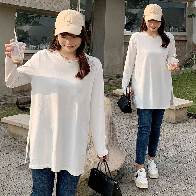 変形策の大きいサイズの婦人服の太ったmm2024新型の学生のデザイン感のtシャツの純色の長袖はやせていて底の上着を打ちます。