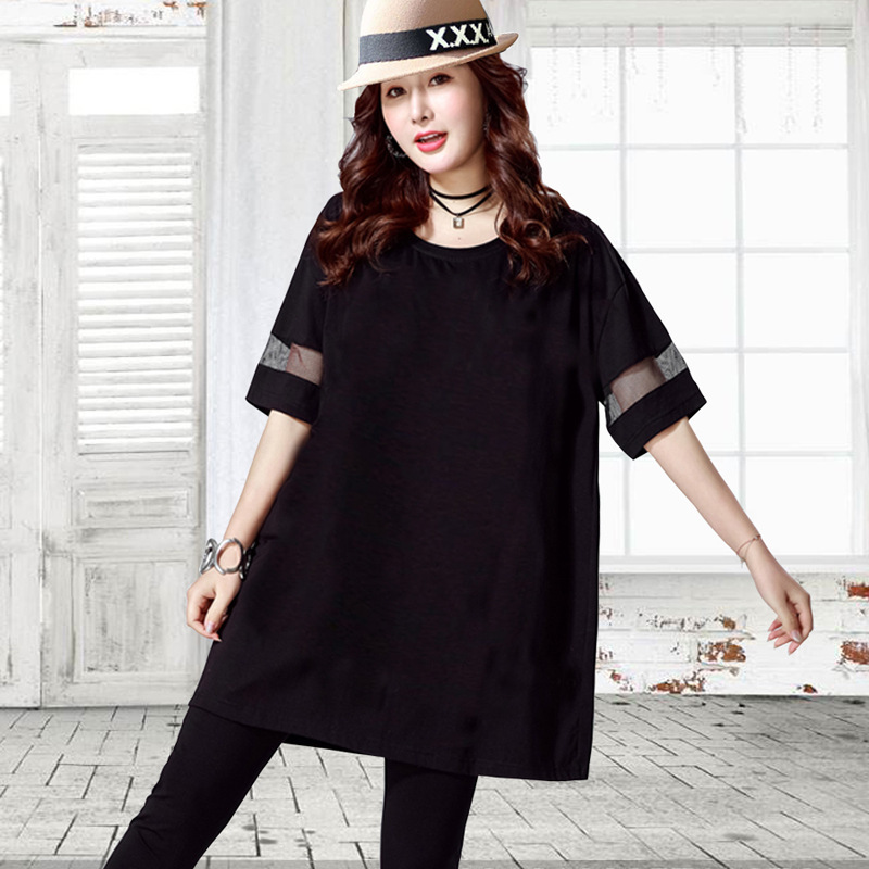 00/300斤の特超大サイズの太った妹さんは夏のゆるい中長の上着の純綿半袖tシャツ3569
