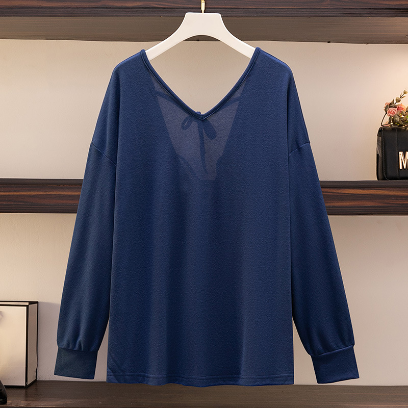 太ったmmの新しい200斤300斤の大きいサイズの女装のモーデールの手触りのvネックの長袖のtシャツの底のシャツ2214
