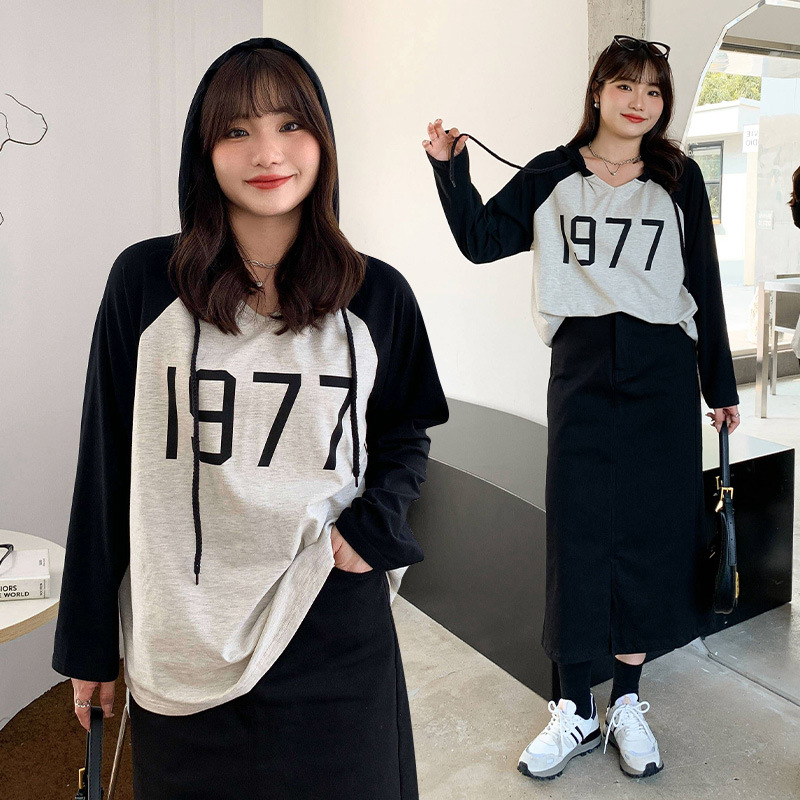 150斤の太った妹2023春夏のカジュアルで快適な韓国版のステッチの上着の大きいサイズの婦人服の長袖のtシャツの卸売り