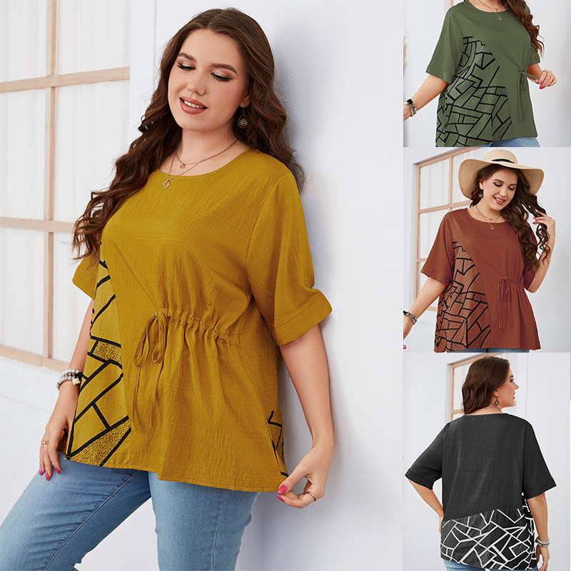 欧米の対外貿易の大きいサイズの婦人服の2023五分の半袖の丸首はやせている気質の通勤の純色の大きいサイズの太っている妹のシャツを現します。