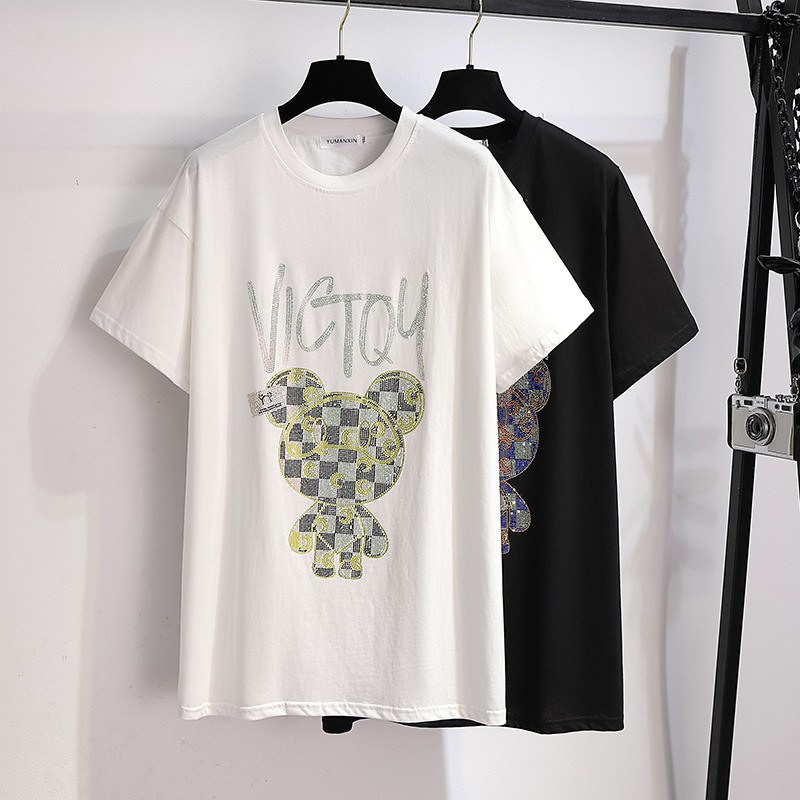 ホットドリルの新製品は太って大きくなって痩せてゆるい中長の半袖tシャツの女性200/300/350斤6386