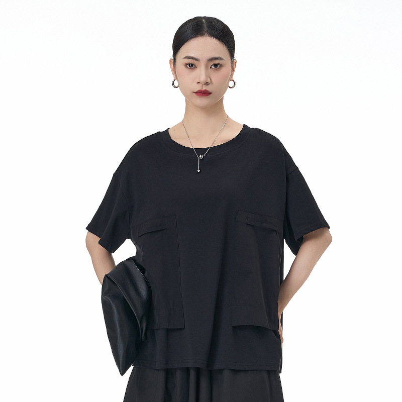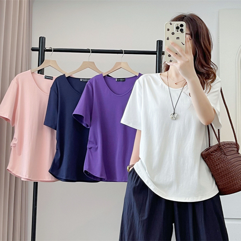 オリジナルスプライシング純綿半袖 Tシャツ 2025 夏の新大きいサイズの女性のルーズでスリムな韓国スタイルのトップ 80058
