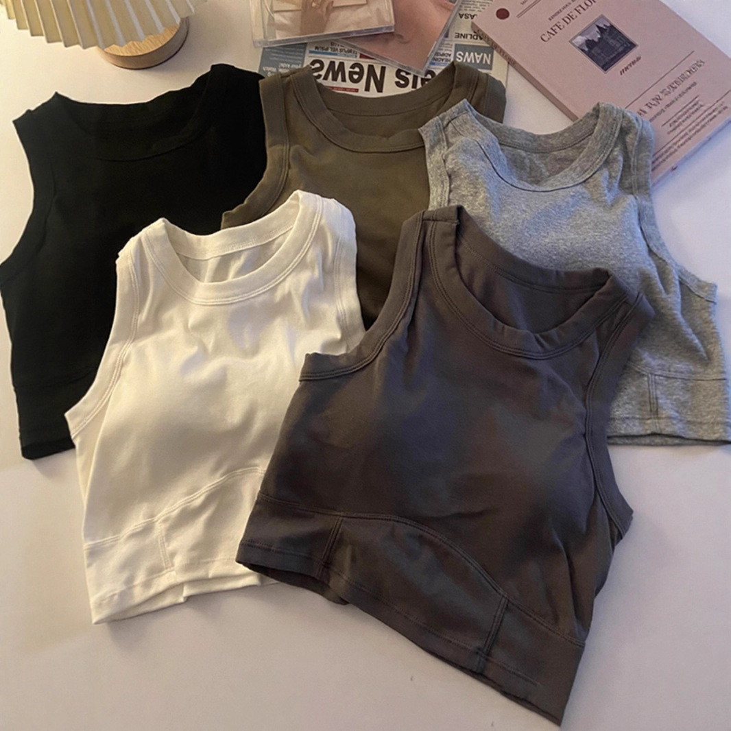 女性用キャミソール、夏用美背中インナー、アウターブラ、ワンピースボトム、ノースリーブTシャツ、胸パッド付きショートトップ