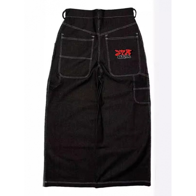 ヨーロッパとアメリカのハイストリート JNCO パターン刺繍ジーンズ ヒップホップ ルーズ ワイドレッグ ジーンズ コットン フリル襟