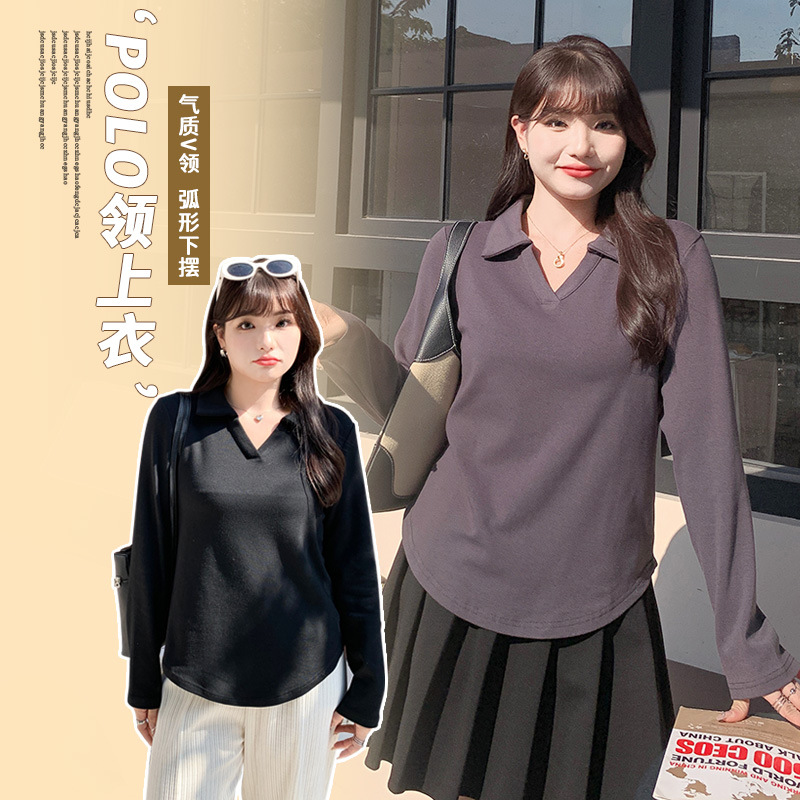 200斤300斤秋冬加肥大号モーデール手触り弾力底シャツ長袖tシャツ女性代理