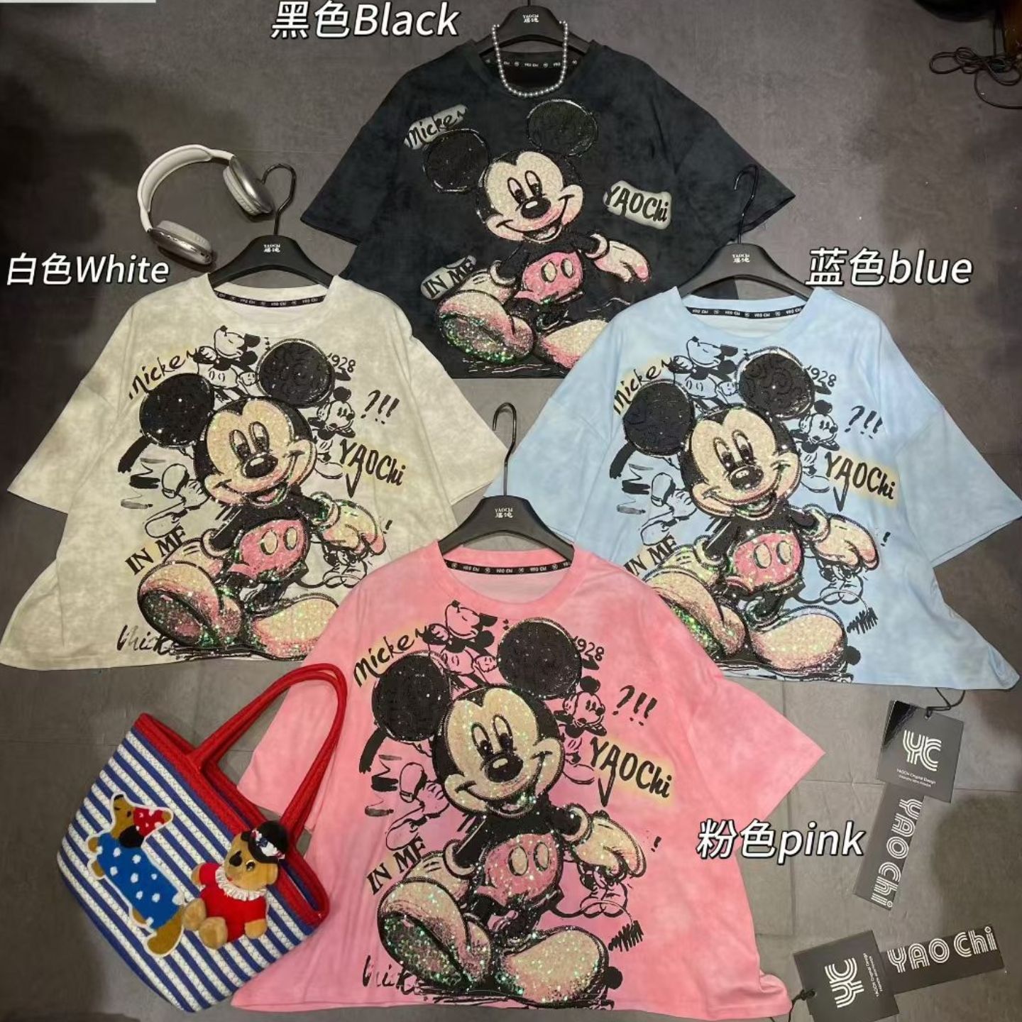 夏の韓国版のゆったりとした年齢のミッキーのプリントの丸首の5分の袖の頭のtシャツの百合のカジュアルな上着の小さいシャツの女性