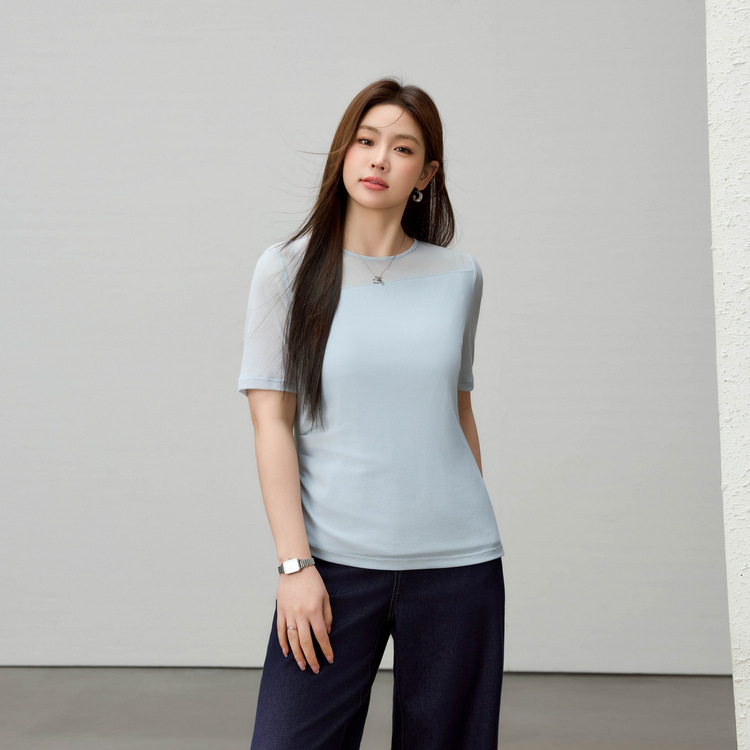 気質の半高襟の透視網の紗は底のシャツをつなぎ合わせてその9007大サイズの透視通勤セクシーな上着の中で合わせます。
