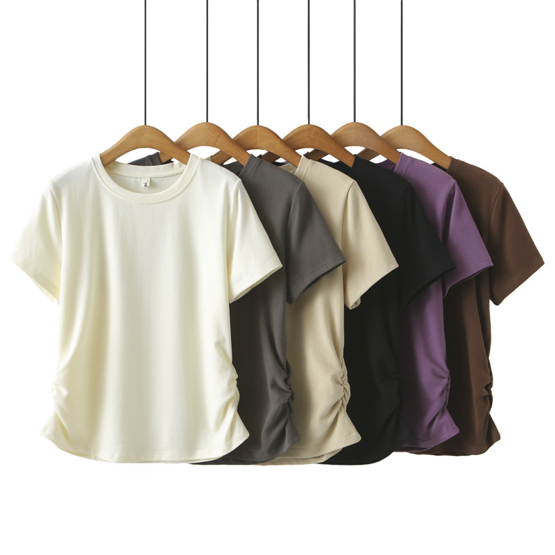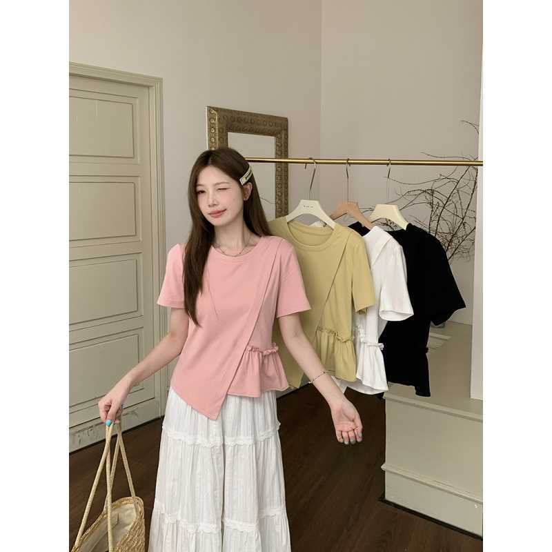 2024 夏の新スタイル脂肪 mm 韓国スタイルデザインスリムラウンドネックホットガール半袖 Tシャツトップ小さなシャツトレンディな