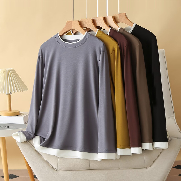 純色の高襟フランスの柔らかい肌の綿の底のシャツはその8808大きいサイズのカラフルな多色の底の長袖の上着を潤します。