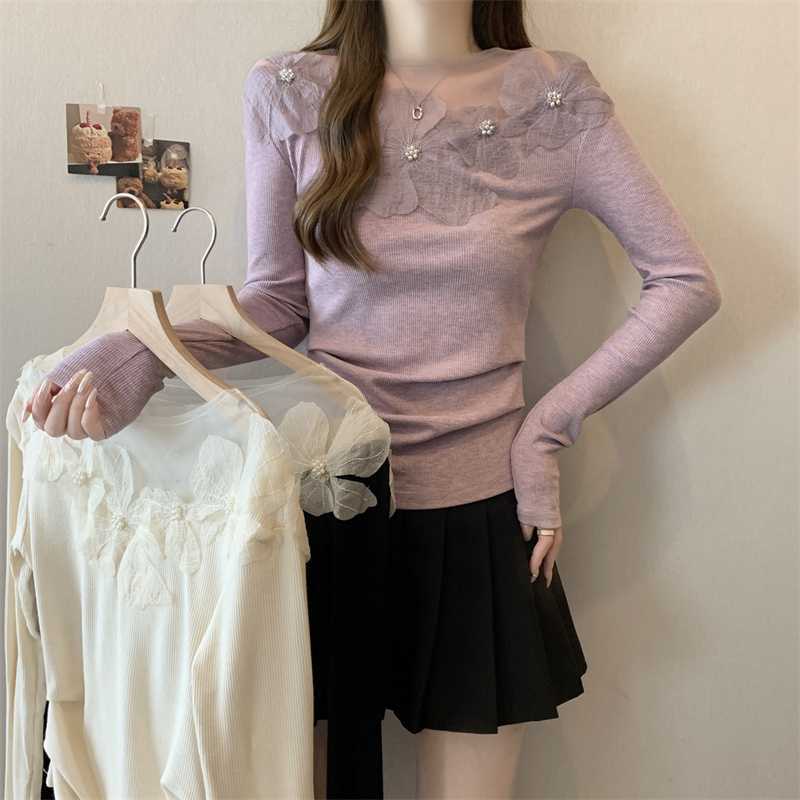 大きいサイズの女性の秋冬のエレガントなインナーウェア 100kg 太った女の子向けのファッショナブルなカジュアルなレースの花柄のドイツ製ベルベットのベースレイヤーシャツ 7413