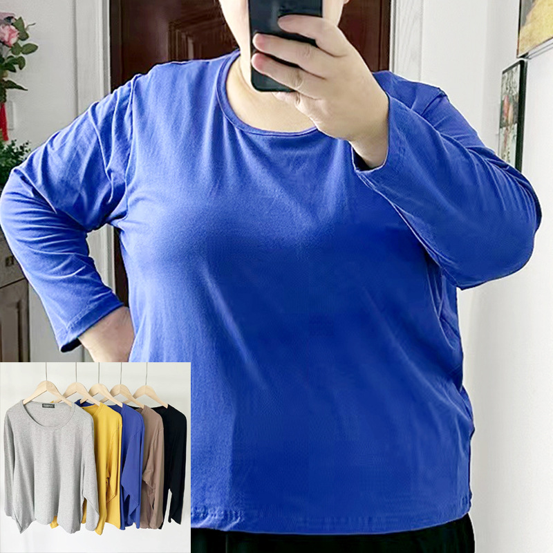 大きいサイズの婦人服の綿の長袖の底のシャツの肥200斤の300斤の太っている弾力の丸首のゆったりしている長袖のtシャツの秋の服