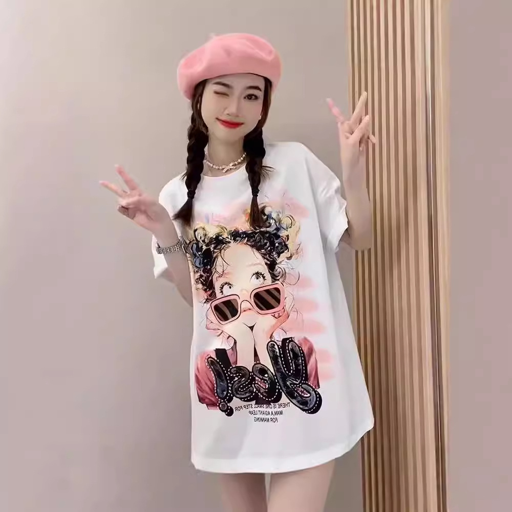 新しいプラスサイズ痩身ルーズミッドレングス半袖Tシャツ女性用200/300/350ポンド9118