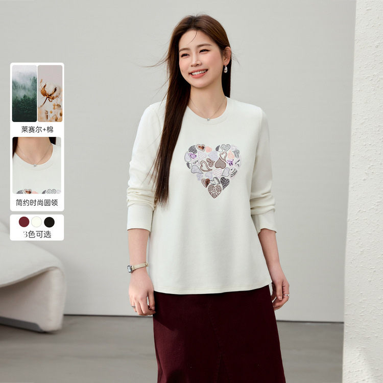 2024年秋新作 大きいサイズ レディース服 ぽっちゃりさん向け カジュアルで万能 着痩せ効果 刺繍入り文字入り ラウンドネックTシャツ インナー 8008