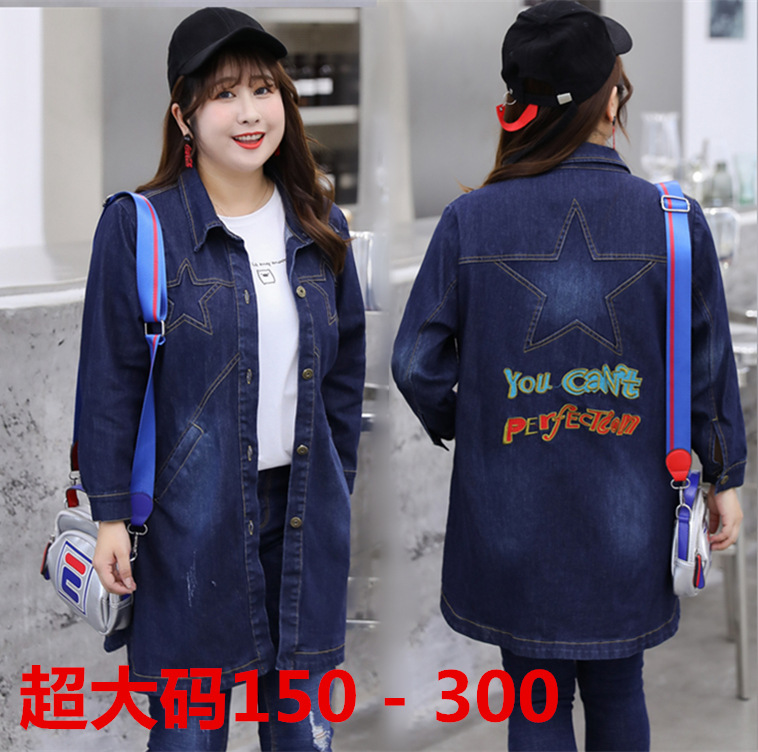 5866 # gx秋装新型太ったmm300斤と太ったファッション刺繍の中の長さのカウボーイシャツは色あせない