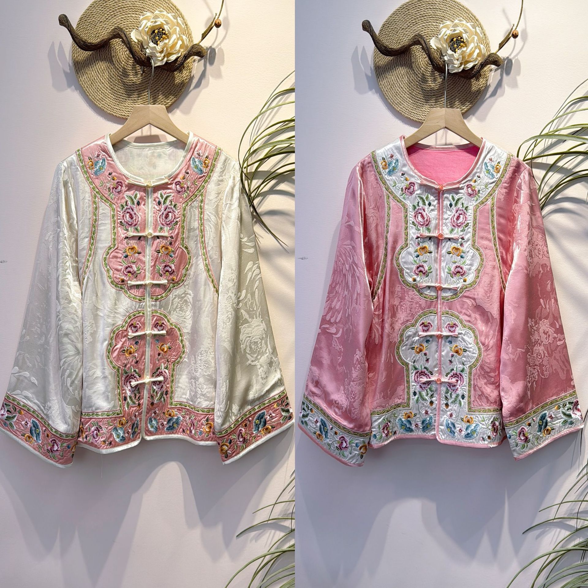 中国風のパッチ刺繍牡丹刺繍チェック柄服改良された気質ジャケットトップ新しい中国風トップ多用途春秋