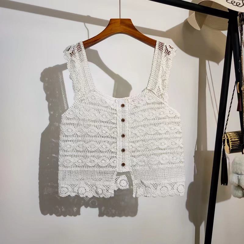 重工釘珠デザイン感氷糸ニットベスト2025夏ファッション