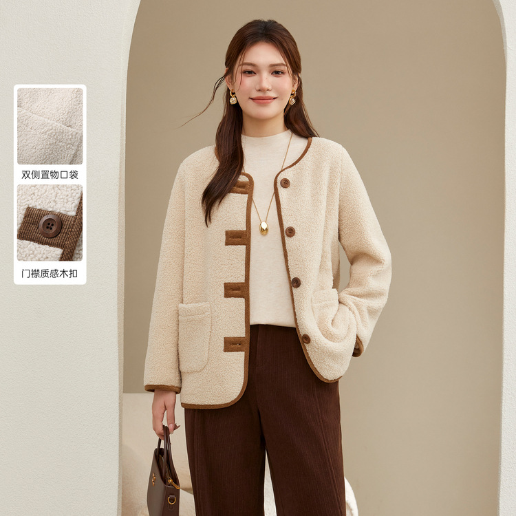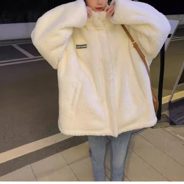 ミルクの甘い上着の婦人服の冬服の子羊の毛のコートの女性の白い毛の上着の大きいサイズの婦人服のファッションのinsの潮