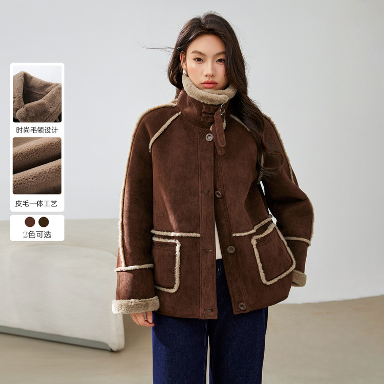韓国シック2024秋冬新作ロングコートラムベルベット多用途ルーズファッションジャケットイントレンド