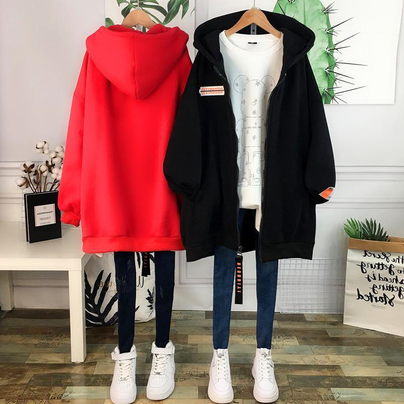 秋冬服2 ~ 300斤太ったMMの特大サイズのベルベットが厚くてゆるいカーディガンのジッパーが帽子のコートins潮についている