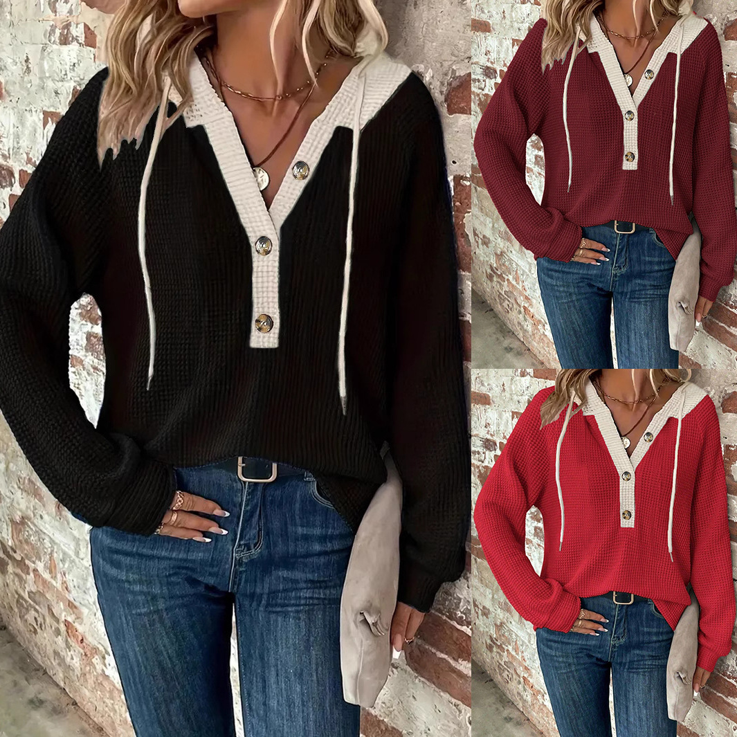 2025 ヨーロッパとアメリカのクロスボーダー秋と冬の女性の無地ワッフルフード付きボタンルーズ長袖スウェットシャツ大きいサイズの女性の服