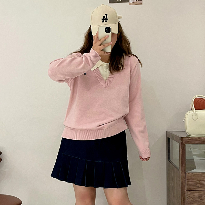 【怠惰なデザイン感綿ウールvネックニット】繊莉秀大サイズ女装太ったmm2025春新製品
